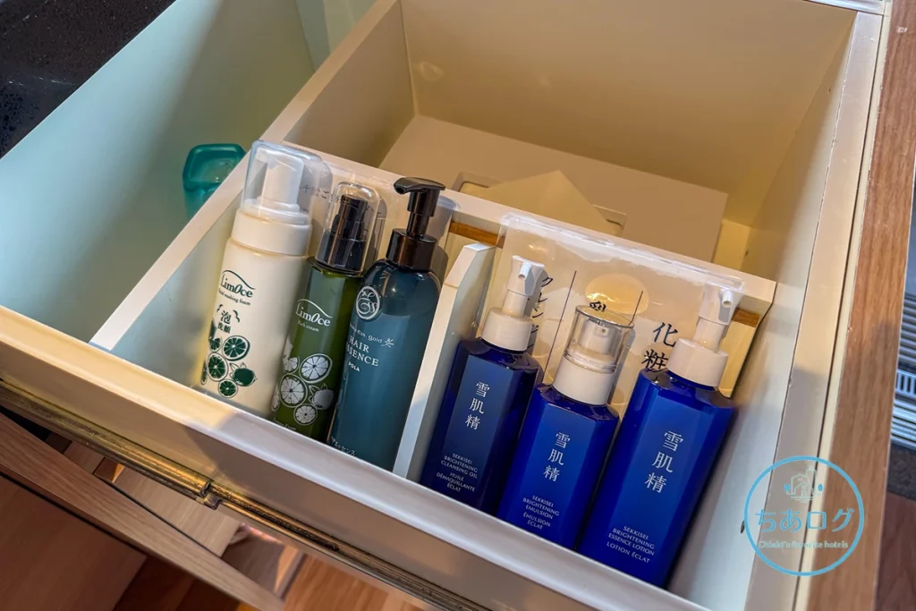 南房総・鴨川産のレモンを主原料にしたスキンケアブランド「LimOce -リモーチェ-」の洗顔フォーム・オールインワンクリーム、POLAの「アロマエッセゴールド」のヘアエッセンス、KOSEの「雪肌精」のクレンジングオイル・乳液・エッセンスローション。