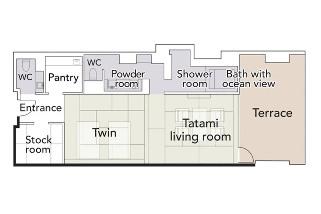 | ヒルサイドスイート | TERRACE BATH テラスバス | 中層〜低層 | 有 / 無 | 山側 畳スペースがない部屋は2ベッドルーム | |