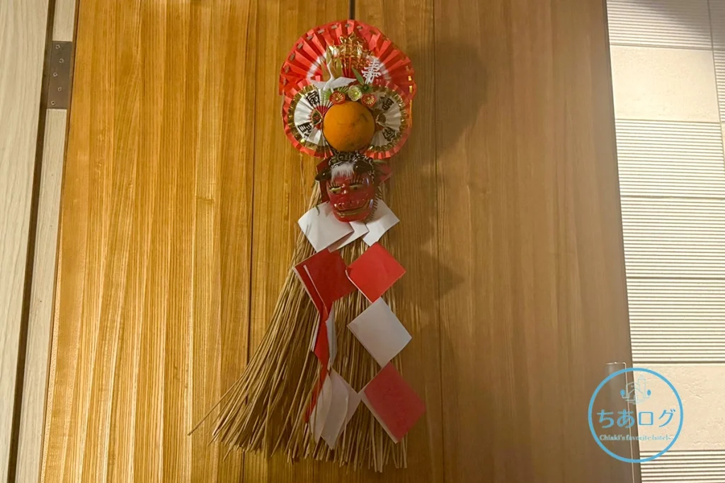 THE SHINRAでのお食事は、プレステージ棟の2階「THE DINING 27.81」でいただきます。お正月なので、ドアにはしめ飾りが掛けられていました。