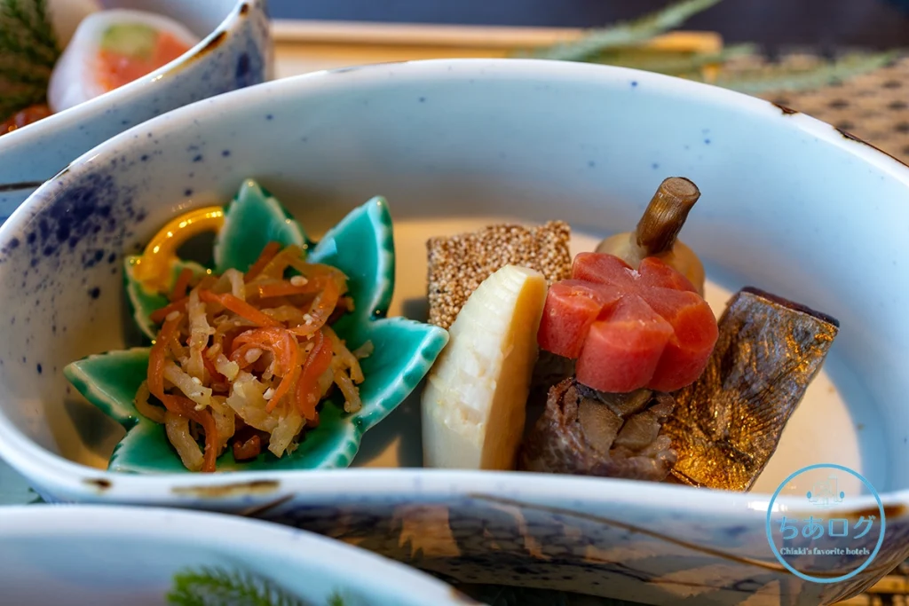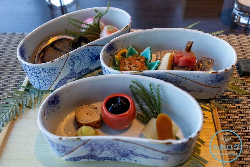 レストラン「THE DINING 27.81」でいただいた豪華なディナーはもちろんですが、今回はなんと朝食がお正月限定の「おせち料理」