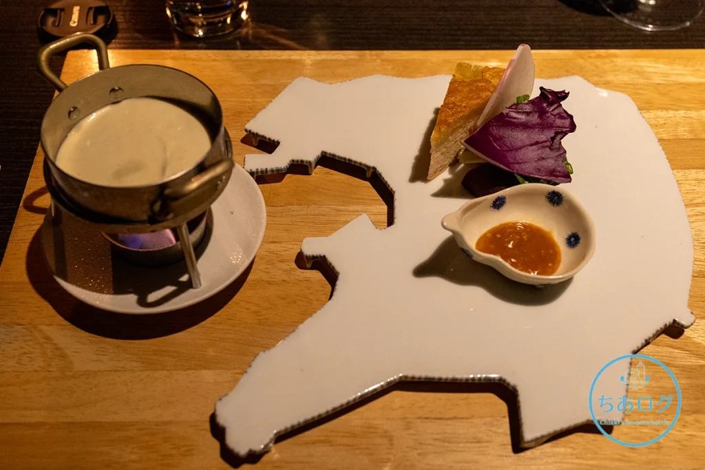 前回の宿泊の時にもあったメニューで、お皿が館山市の形であることは、説明をいただく前にわかっていました