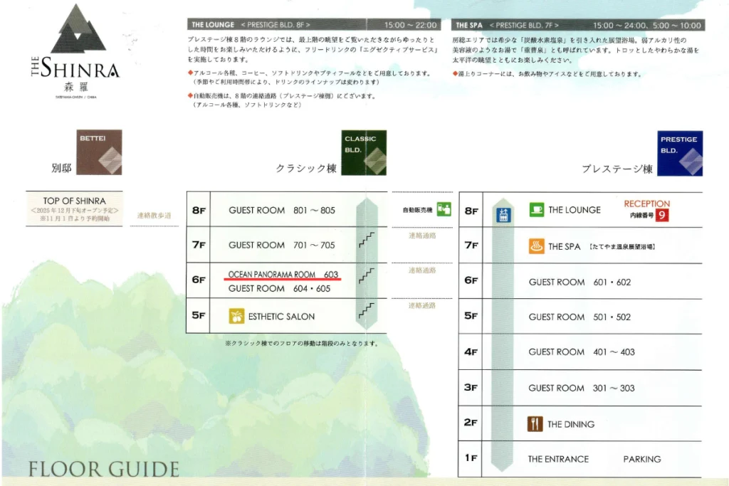 オーシャンパノラマルームは、クラシック棟の6階にあります。