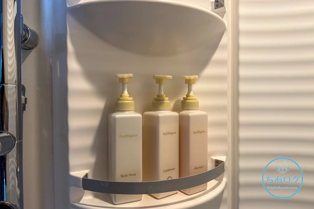 ミキモトのシャンプー・コンディショナー・ボディソープのボトルが置いてありました。